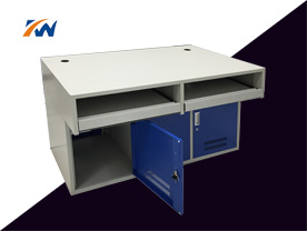 钢制结构:采用冷轧钢板材质,表面静电喷塑。台面为全钢材质,柜体深度为600mm ,高度450mm,内置层板,前后门可开启并配锁。下面主架柜前后配置通风网板。